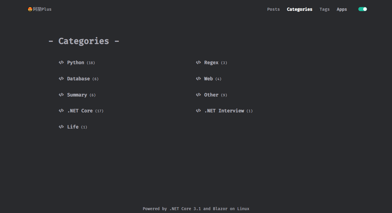 Posts.Category.razor是根据分类查询文章列表页面,他接受一个参数 name,我们要根据 name 去 API 查询数据然后绑定页面即可。