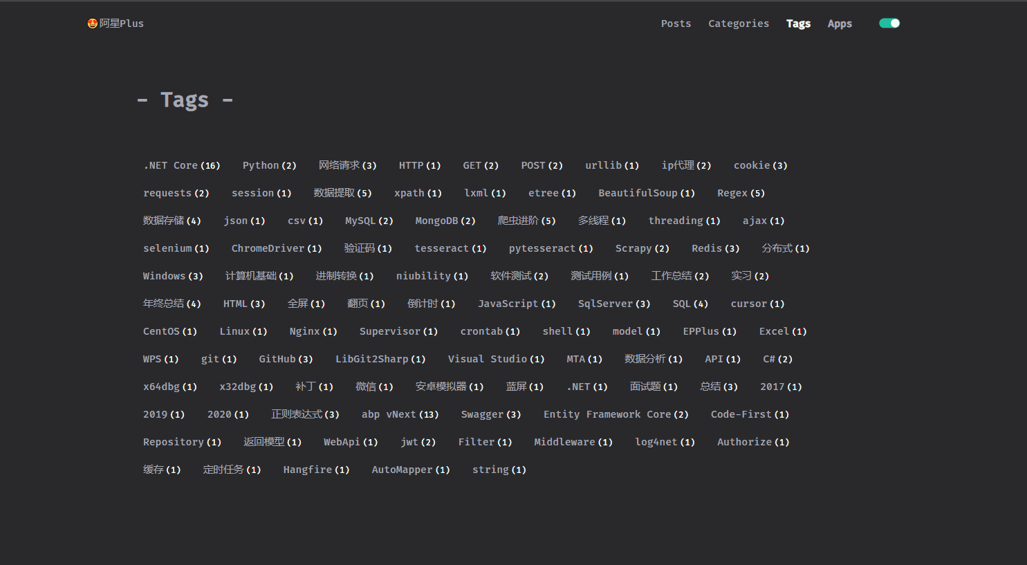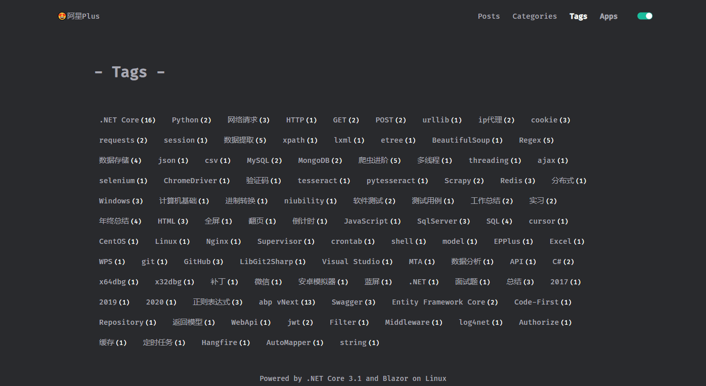 Categories.razor是标签列表页面,和分类列表 HTML 结构差不多一样的,除了返回类型和接口地址不一样,将上面代码复制过来改改即可。