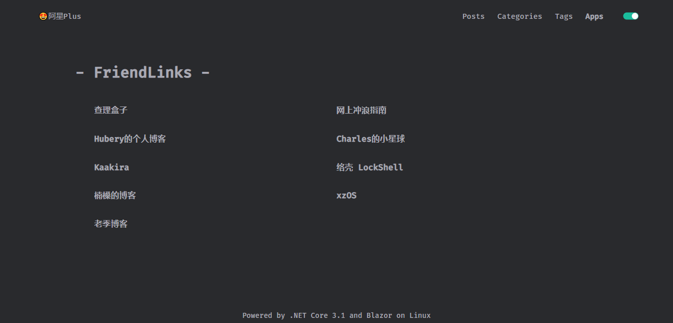 FriendLinks.razor是友情链接列表页面,实现方式和上面两个套路一模一样。