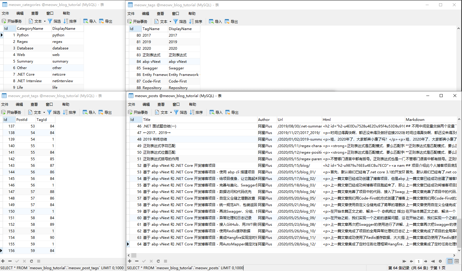 现在博客数据库中的数据是比较混乱的,为了看起来像那么回事,显得正式一点,我先手动搞点数据进去。