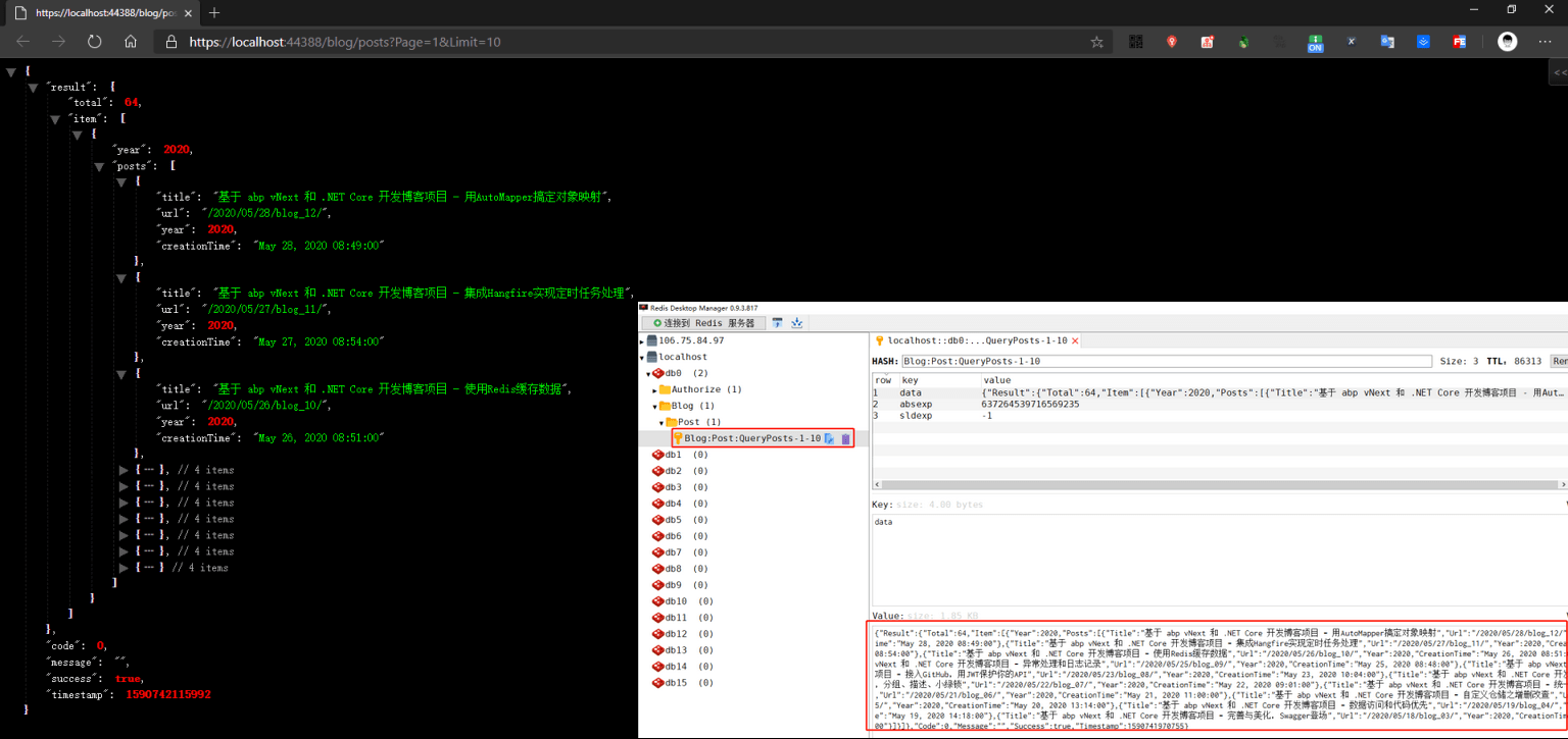 已经可以查询出数据,并且缓存至 Redis 中。