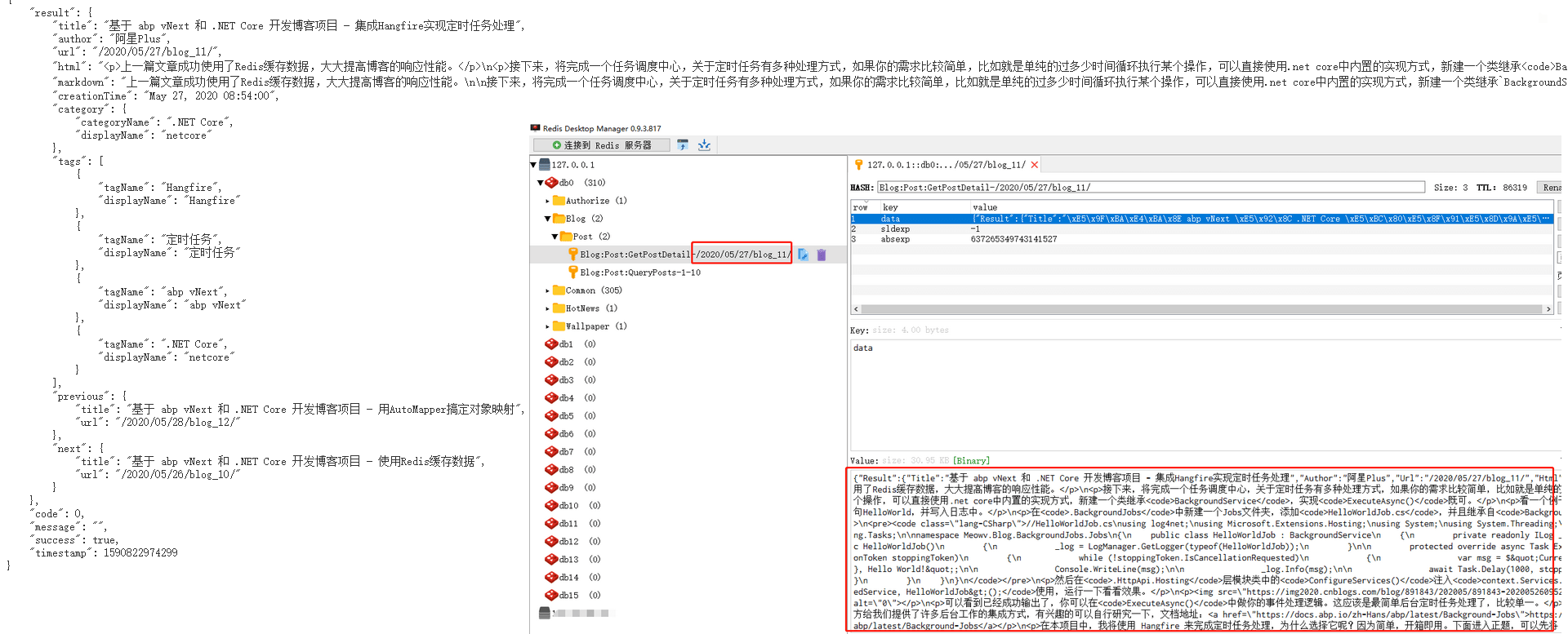编译运行,然后输入 URL 查询一条文章详情数据。