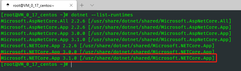 安装完成后可以使用 dotnet --list-runtimes 查看运行时。
