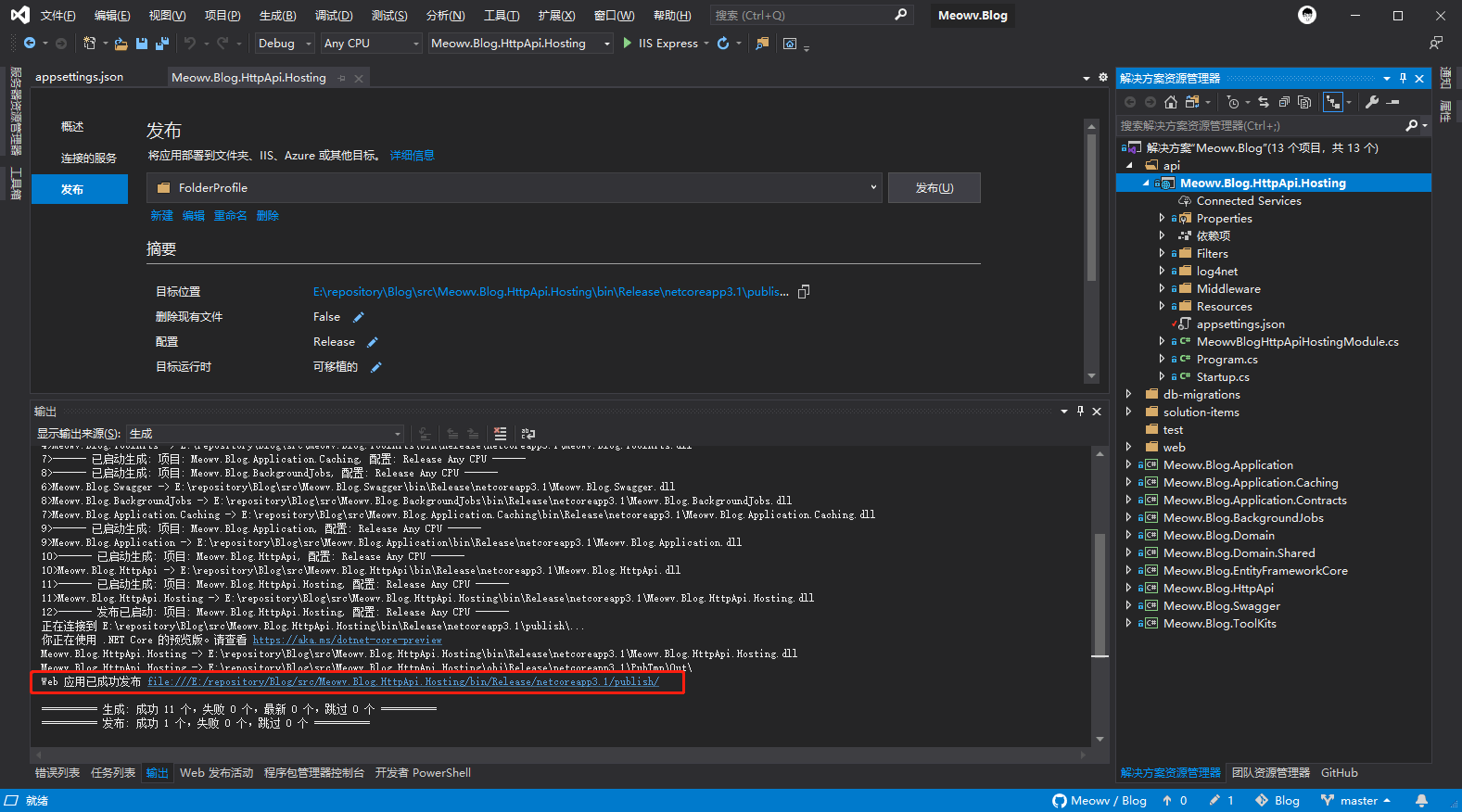 到这一步就可以把我们 API 项目部署上去了,直接利用 Visual Studio 将项目打包发布,appsettings.json配置文件信息填好,这一步不用多说吧,相信大家都会。
