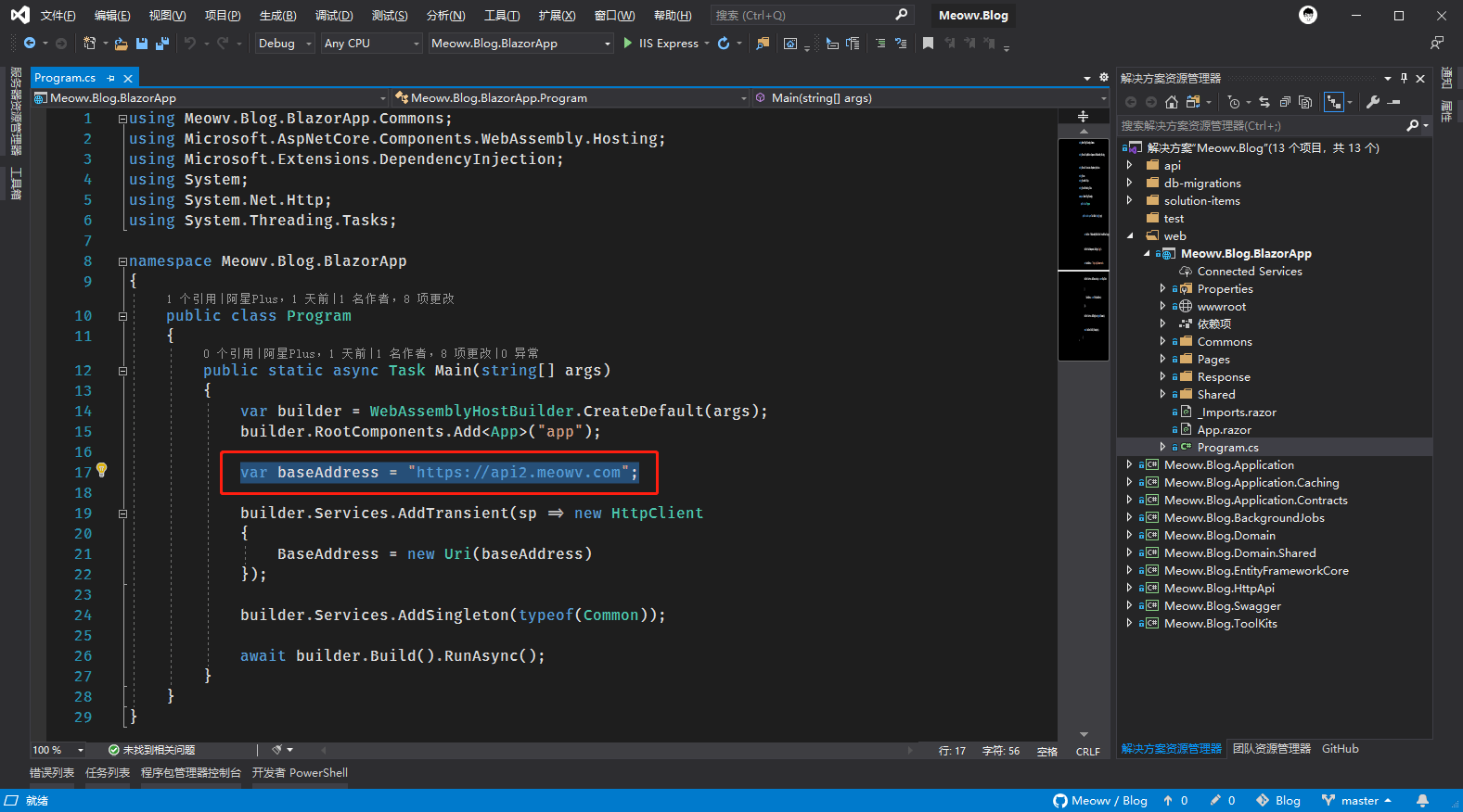 接下来去发布 Blazor 项目,发布之前改一下 API 地址,当然这个也可以做成配置文件形式的。
