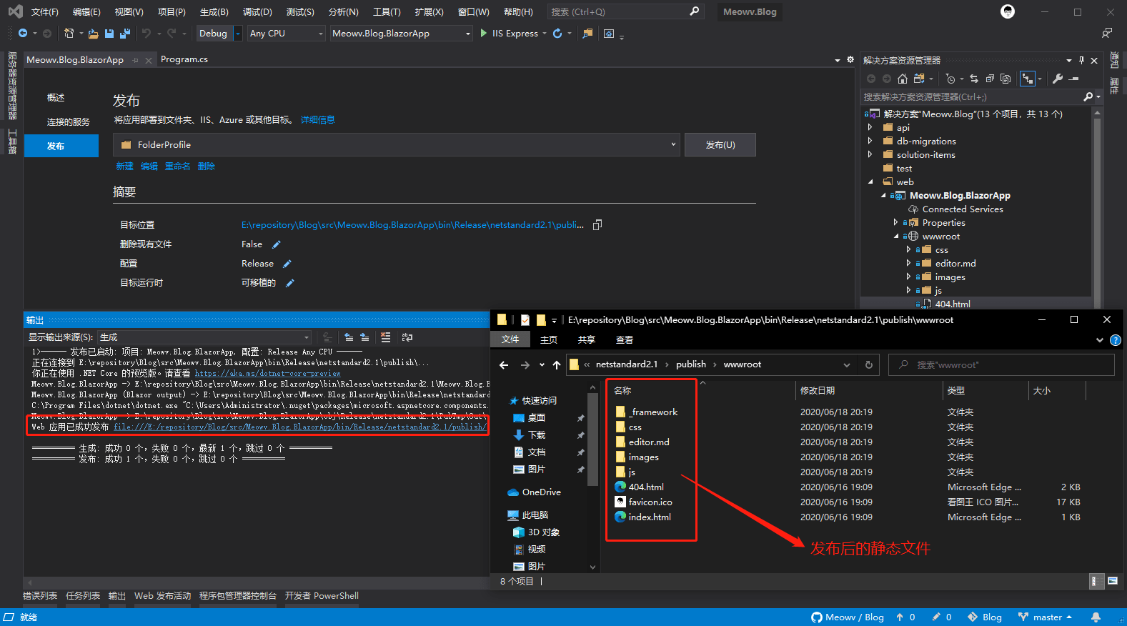 根据实际操作和踩坑,现在如果发布还是会报一个无法加载资源的错误The resource has been blocked.,然后在 GitHub 找到了解决办法,详见:https://github.com/dotnet/aspnetcore/issues/19907#issuecomment-600054113 。