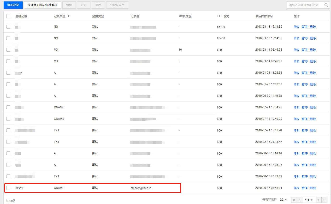 最后在去配置一下域名的 CNAME 解析即可,等待 DNS 生效,便可以用自定义域名访问了。