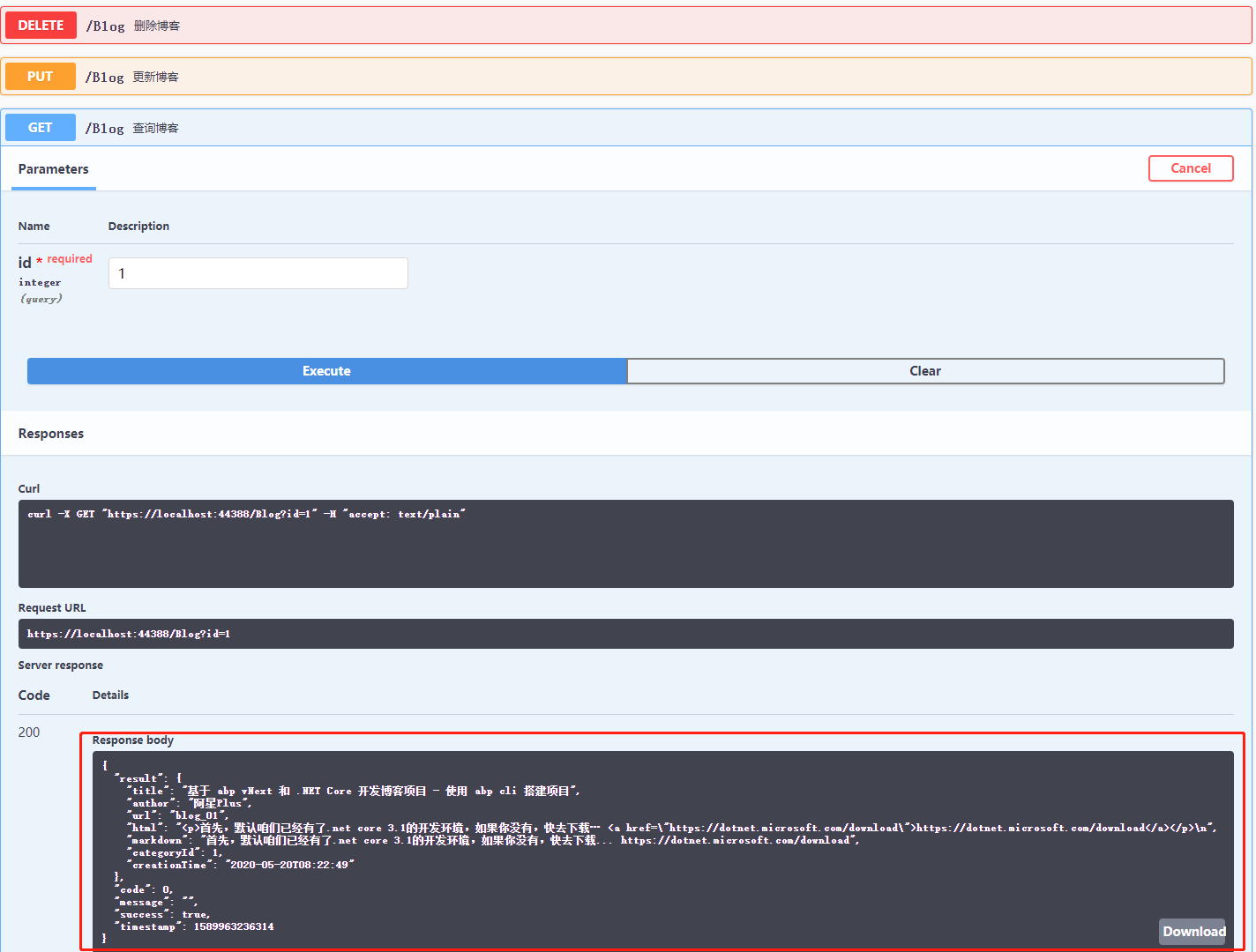 上一篇文章使用自定义仓储完成了简单的增删改查案例,有心的同学可以看出,我们的返回参数一塌糊涂,显得很不友好。