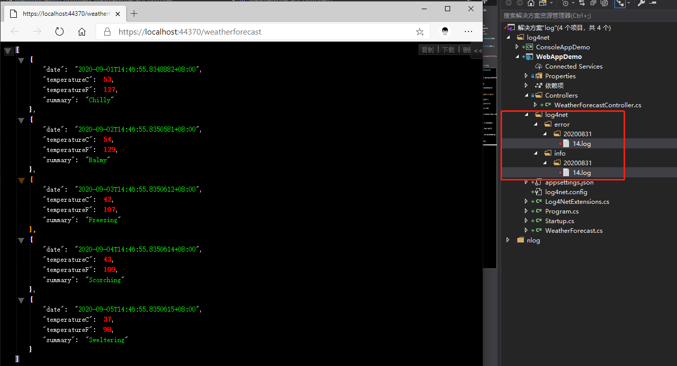 新建一个静态类,写一个扩展方法UseLog4Net(),用于log4net初始化。