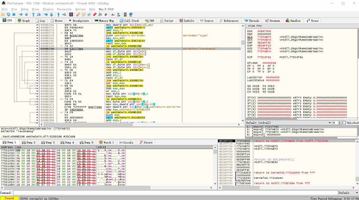 前两天看 GitHub 发现一个有趣的项目,PC 微信防撤回补丁,本着研究学习的目的,在看过源码,一顿疯狂操作之后,了解了其原理是基于修改 wechatwin.dll 达到防撤回的。